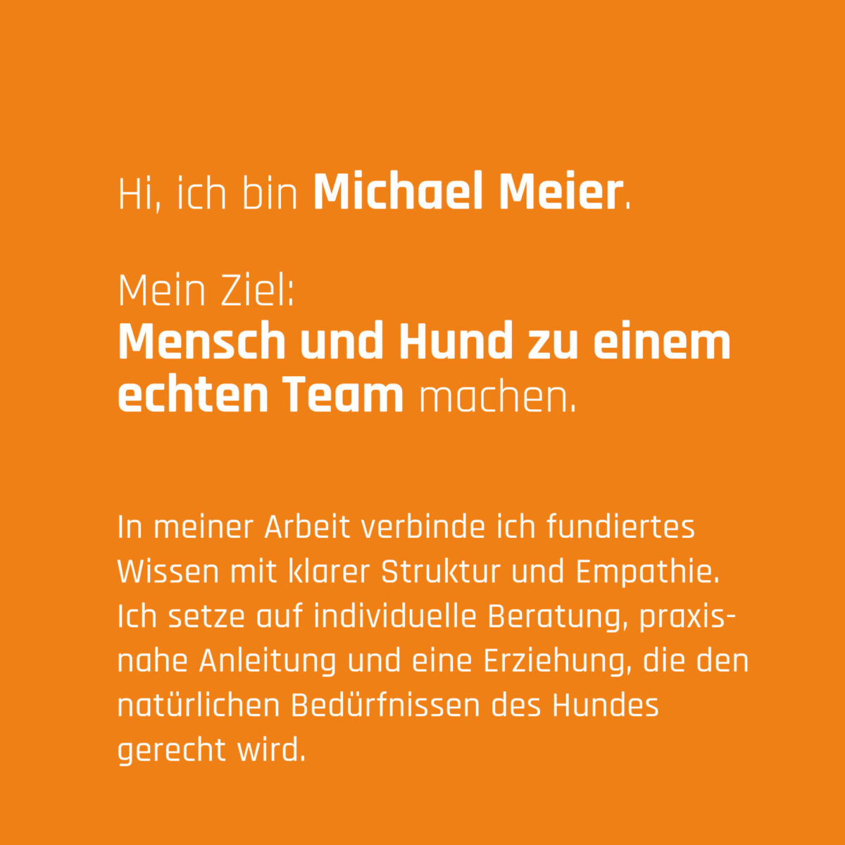 Ich begleite dich und deinen Hund auf eurem gemeinsamen Weg. Dabei steht nicht das Funktionieren im Vordergrund, sondern das gegenseitige Verstehen. Du lernst, deinen Hund zu lesen, seine Bedürfnisse zu erkennen und mit ihm klar und vertrauensvoll zu kommunizieren.