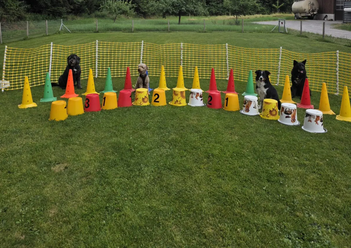 Die Allround-Gruppe baut darauf auf. Mit steigender Ablenkung und neuen Herausforderungen vertiefen wir Folgsamkeit und Teamarbeit.